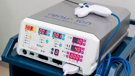 Renuvion has a precise stream of energy. Renuvion is engineered to deliver RF energy and cold plasma to tighten skin without creating injury to surrounding tissue. This is used in conjunction with liposuction.